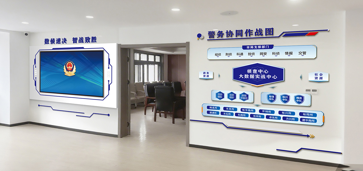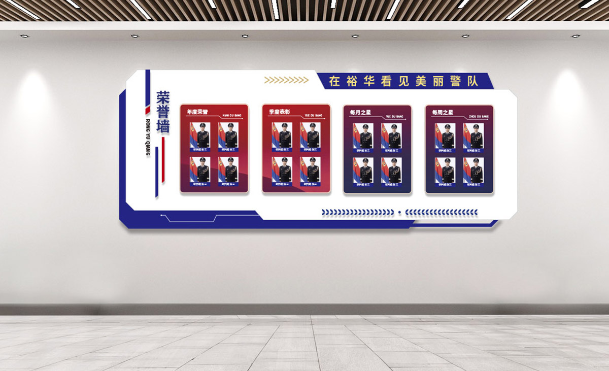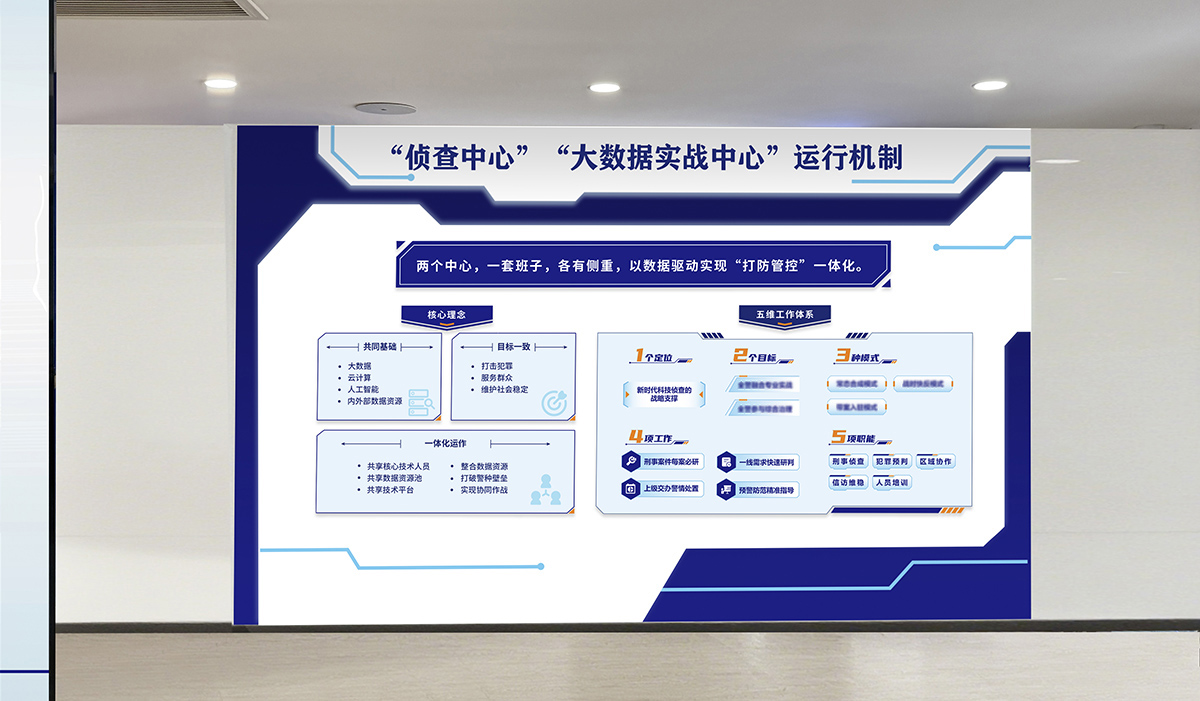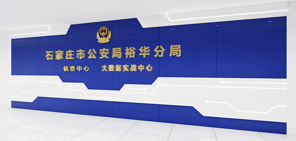 采用公安系统标志性的藏蓝色,象征忠诚、专业与守护,奠定文化墙的庄重底色;
