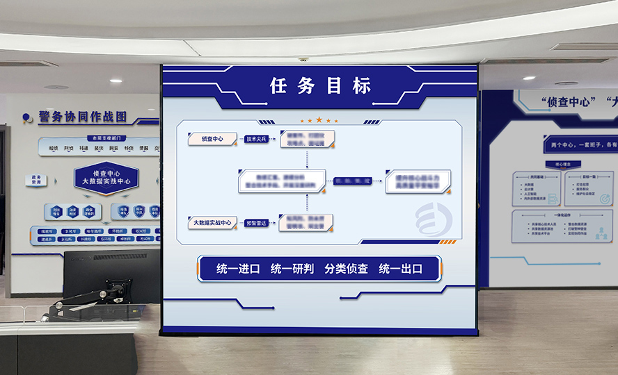 基础风格贴合公安系统调性,以简洁、大气、严谨为基调;融入大数据元素体现专业属性,通过轻量化科技符号(如数据流、网络节点、可视化图表)增强现代感,避免科技感掩盖公安核心气质。